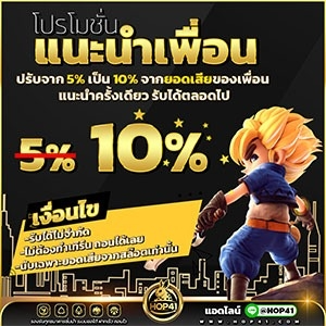 เมื่อคุณสมัครสมาชิกใหม่กับ HOP41 คุณจะได้รับโบนัสพิเศษ 100% จากยอดฝากแรกของคุณ ตัวอย่างเช่น ถ้าคุณฝากเงิน 1,000 บาท คุณจะได้เครดิตเพิ่มอีก 1,000 บาท รวมเป็น 2,000 บาทที่คุณสามารถใช้เดิมพันได้ทันที นั่นหมายความว่าคุณมีโอกาสลุ้นรางวัลมากขึ้นเป็นสองเท่าเลยทีเดียว